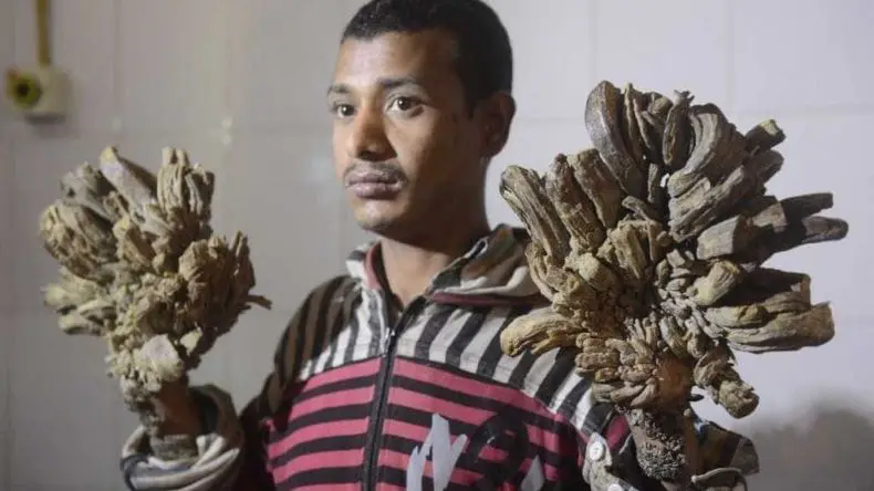 ‘Homem-árvore’ quer as mãos amputadas após doença voltar