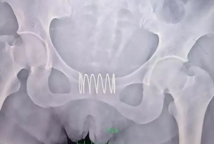 Quando os médicos foram fazer um exame ginecológico, perceberam que havia um objeto estranho na vagina da mulher. Um raio-X revelou depois que se tratava de uma mola de 5 centímetros. “O objeto já estava envolto pelo tecido vaginal”, disse a médica Fu Junhong à imprensa local.