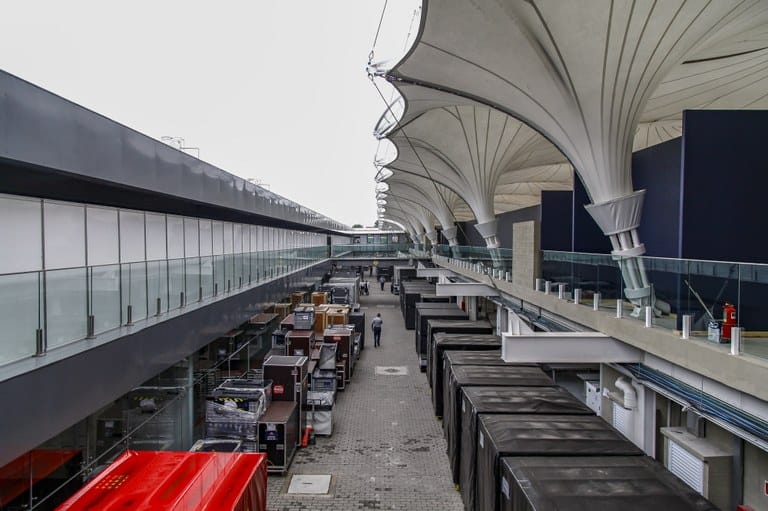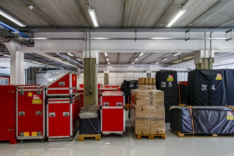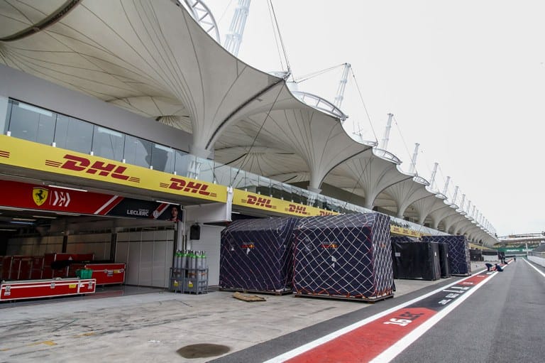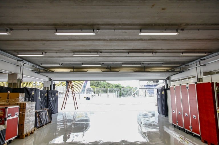 Parte dos pertences das equipes já começou a chegar e está guardado no autódromo. Parte das cerca de 700 toneladas de equipamentos veio de navio e está em São Paulo desde a semana passada.