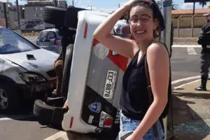 No primeiro dia habilitada, jovem bate carro em viatura da PM