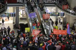 Manifestantes bloquearam a rodovia que dá acesso ao aeroporto de Guarulhos para passageiros que saem da cidade de São Paulo….