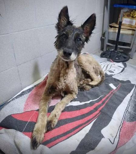 Cão totalmente coberto de piche é salvo em operação de resgate de 9 horas