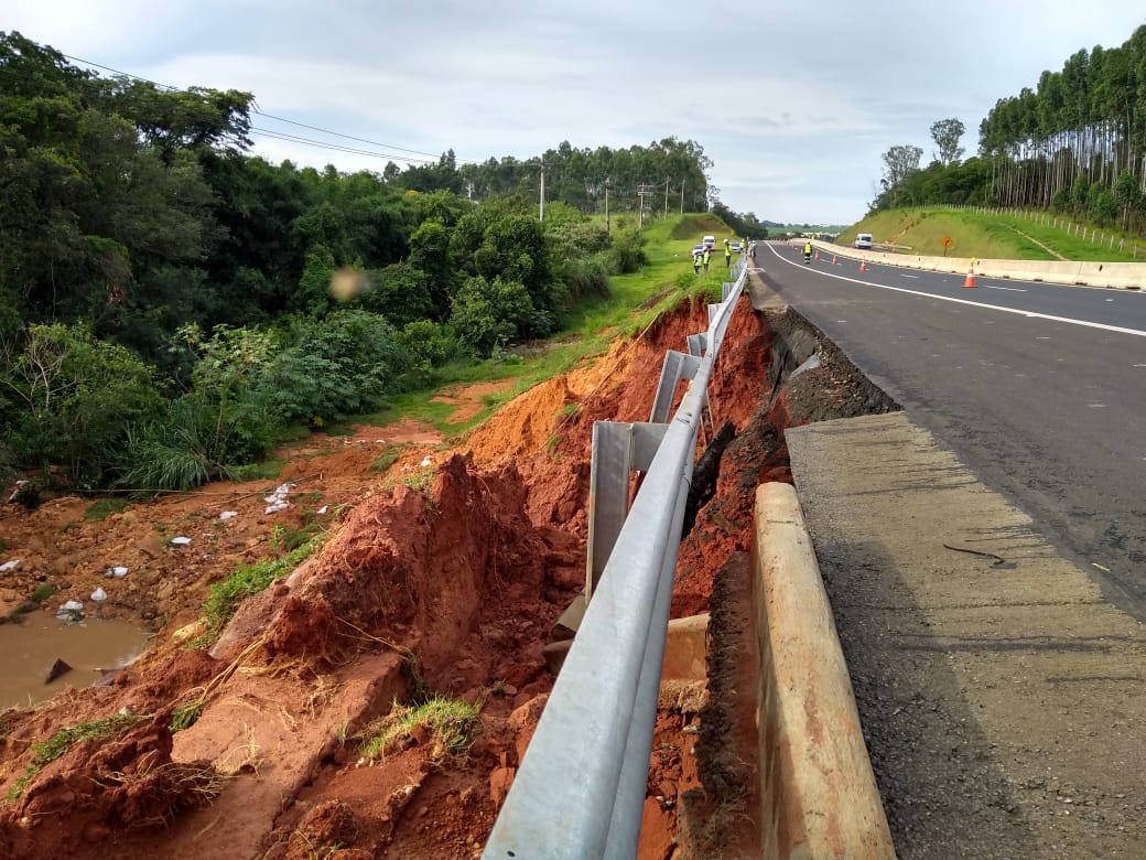 Após avaliação da equipe técnica da concessionária, foi verificado que a erosão não compromete as faixas principais de rolamento.
