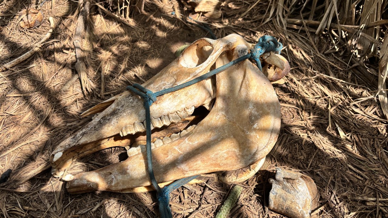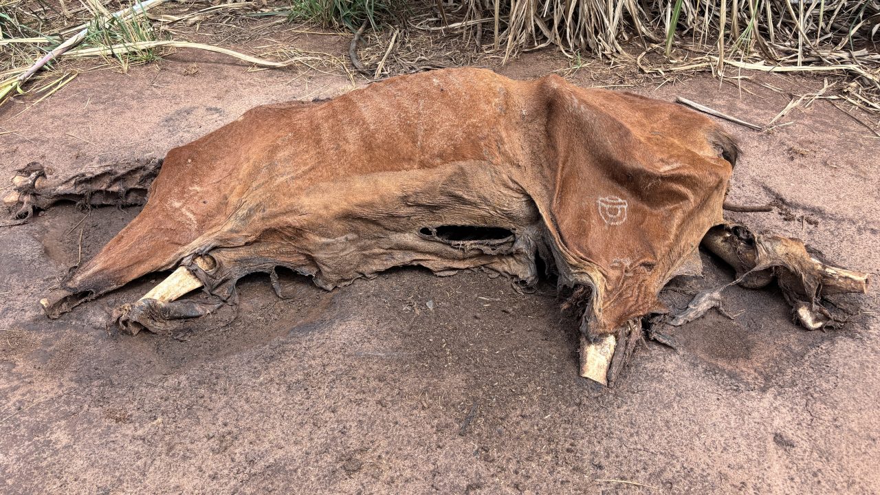 Em meio aos ossos, o corpo de um cavalo já em estado de decomposição está jogado na estrada. O que chamou a atenção, é que o animal está sem cabeça, com as quatro patas cortadas e sem o órgão genital. Há também uma marcação no corpo do cavalo.