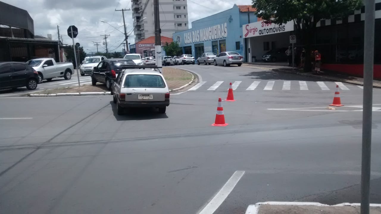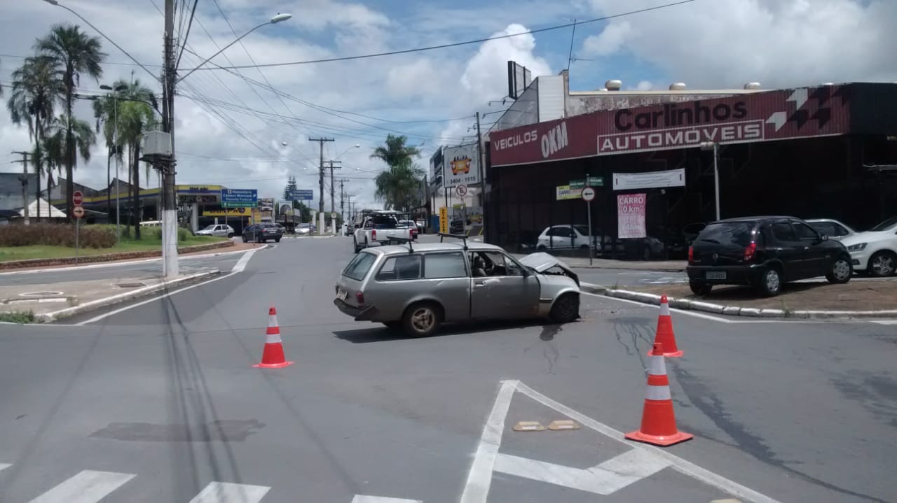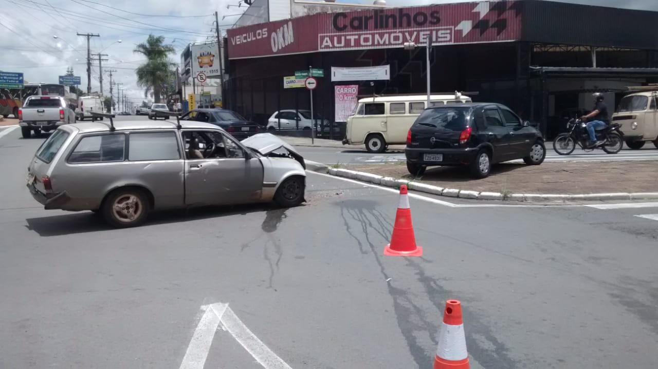 Chevrolet Marajó colidiu na traseira de um Celta, que invadiu o canteiro central da Avenida Maria Buzolin, no Jardim Piratininga