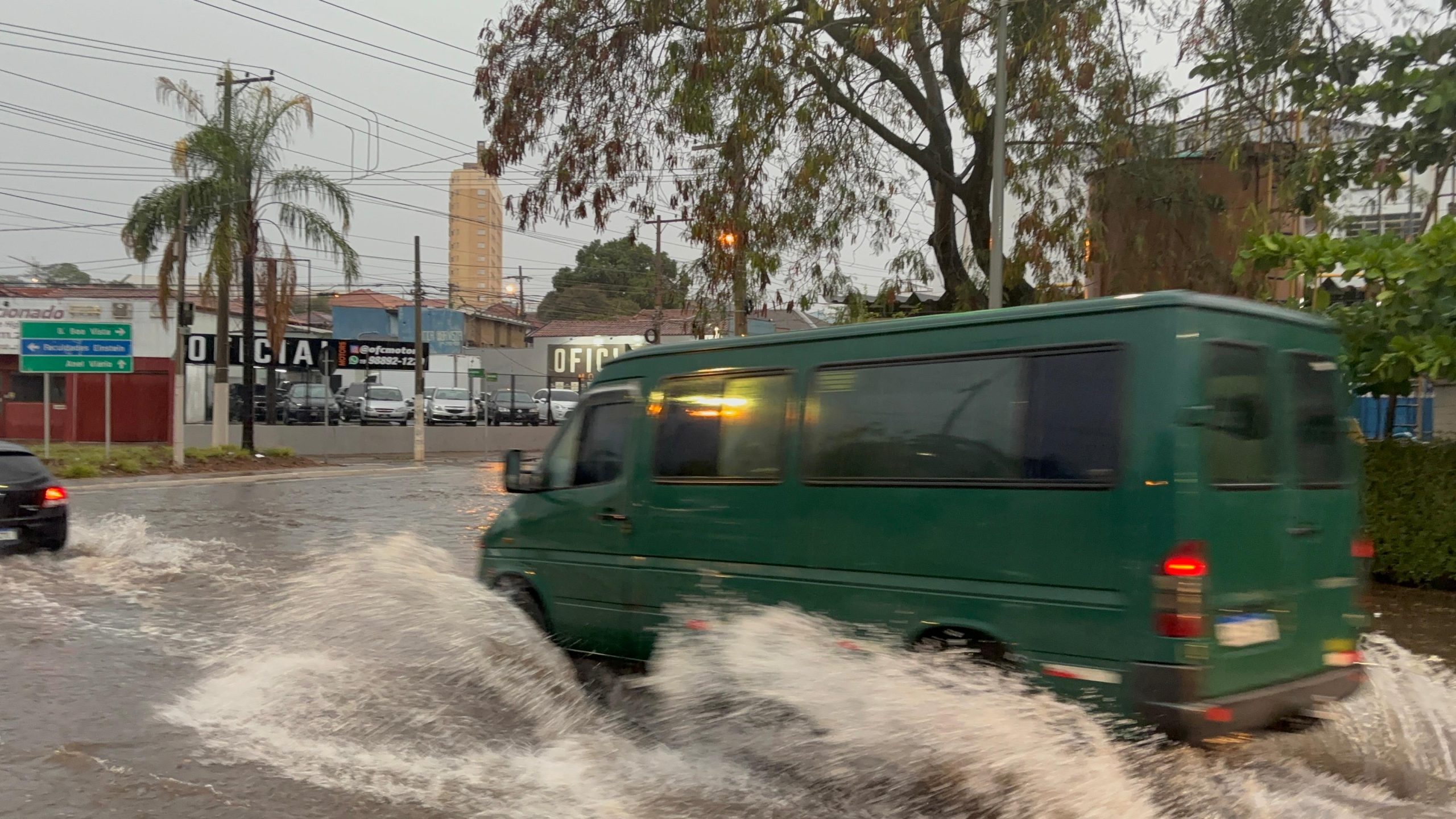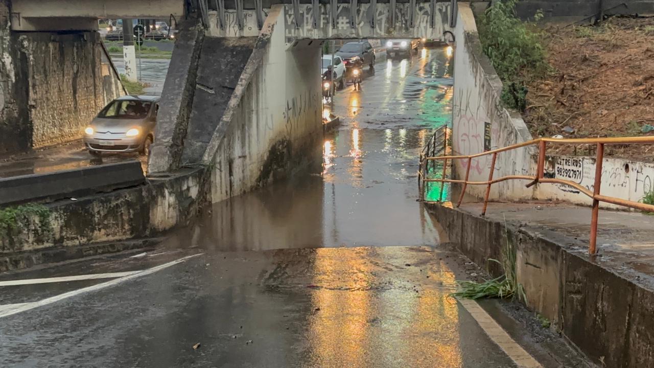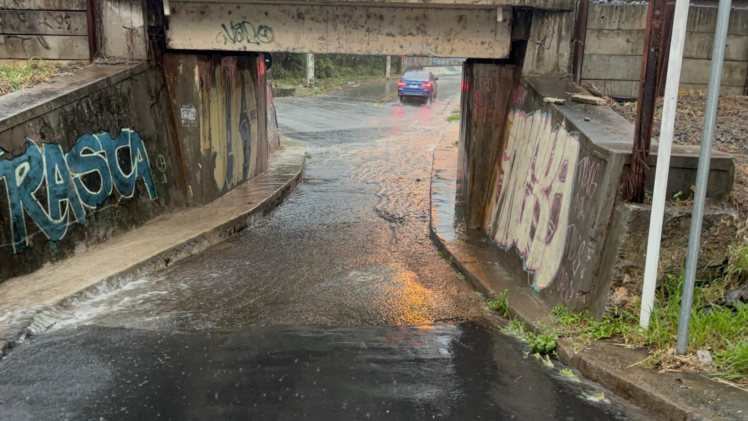 Houve acúmulo de água no pontilhão da Rua do Rosário, trechos da Marginal da Tatu e Avenida Laranjeiras, próximo ao viaduto Francisco D'Andrea
