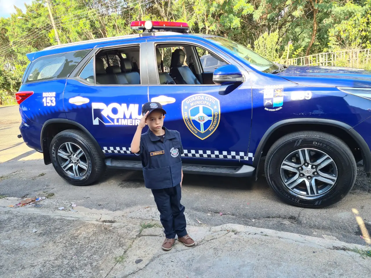 Menino de 7 anos ganha farda de presente da GCM de Limeira