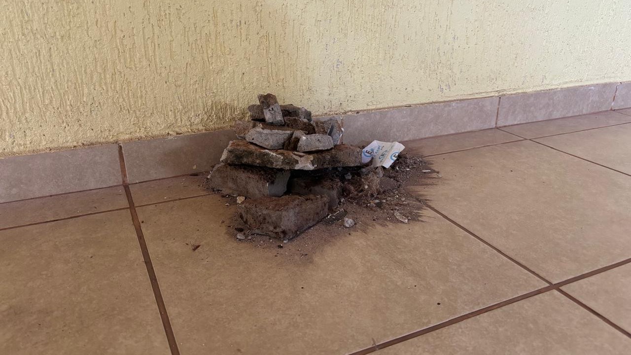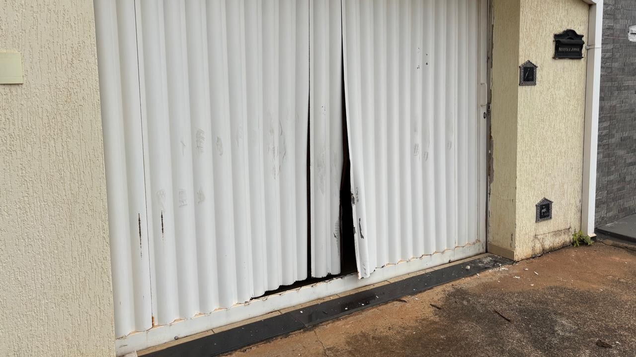 Pedras também foram arremessadas no interior da casa. O portão ficou bastante danificado. A moradora registrou um boletim de ocorrência sobre o ocorrido.