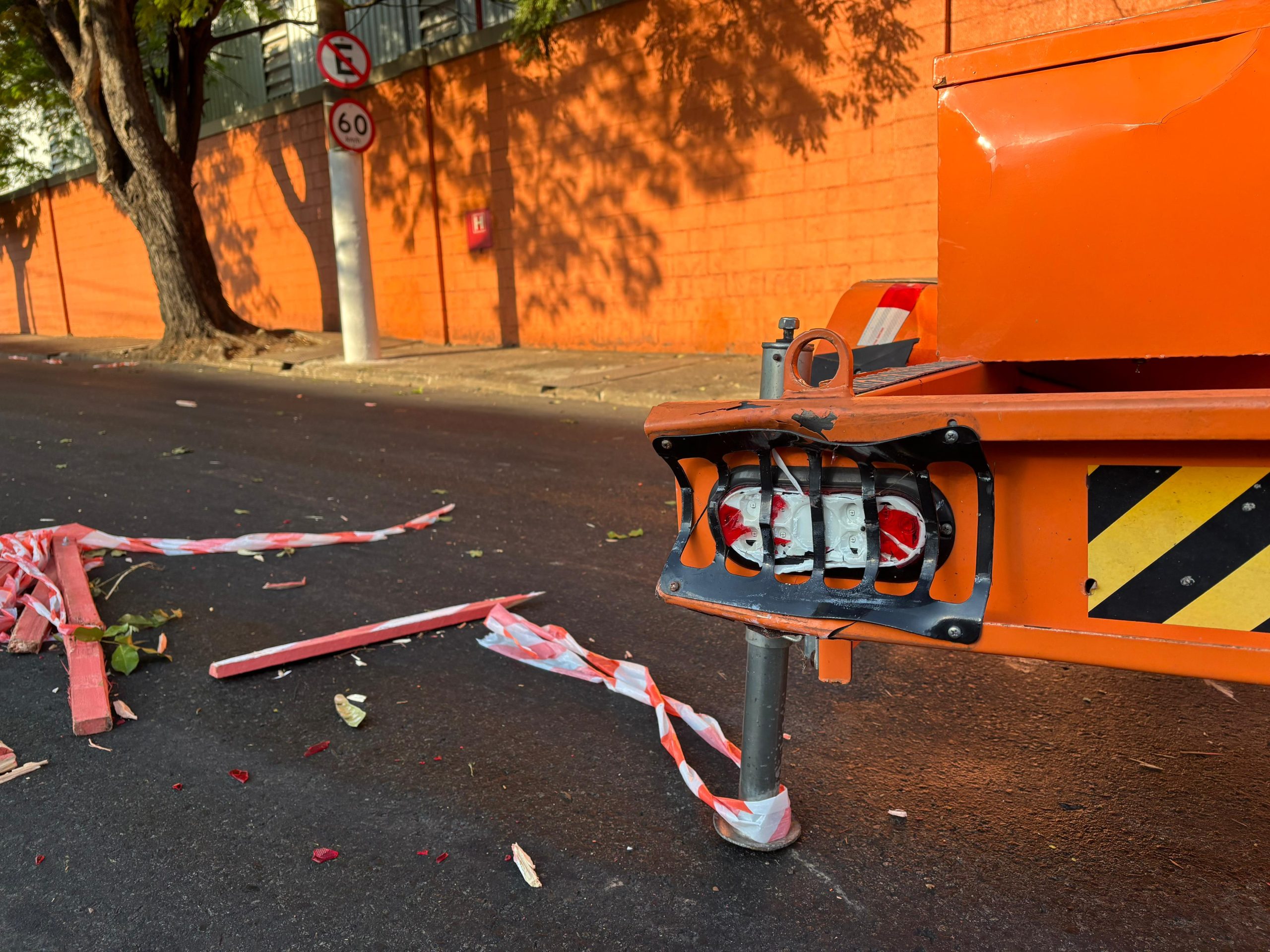 Motorista bate em placa de LED de sinalização em trecho interditado da Av. Campinas