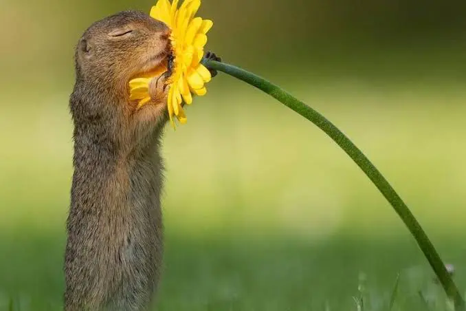 Foto de esquilo cheirando flor faz sucesso na internet