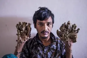 ‘Homem-árvore’ quer as mãos amputadas após doença voltar