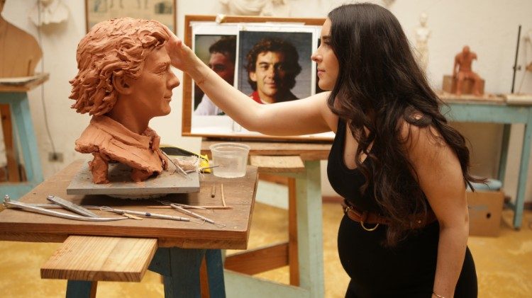 A artista confeccionou a escultura usando fotos e memórias como referência. Paula também contou com a ajuda de familiares, que posaram para ajudar a dar vida a aspectos da anatomia de Ayrton que as imagens não captavam.