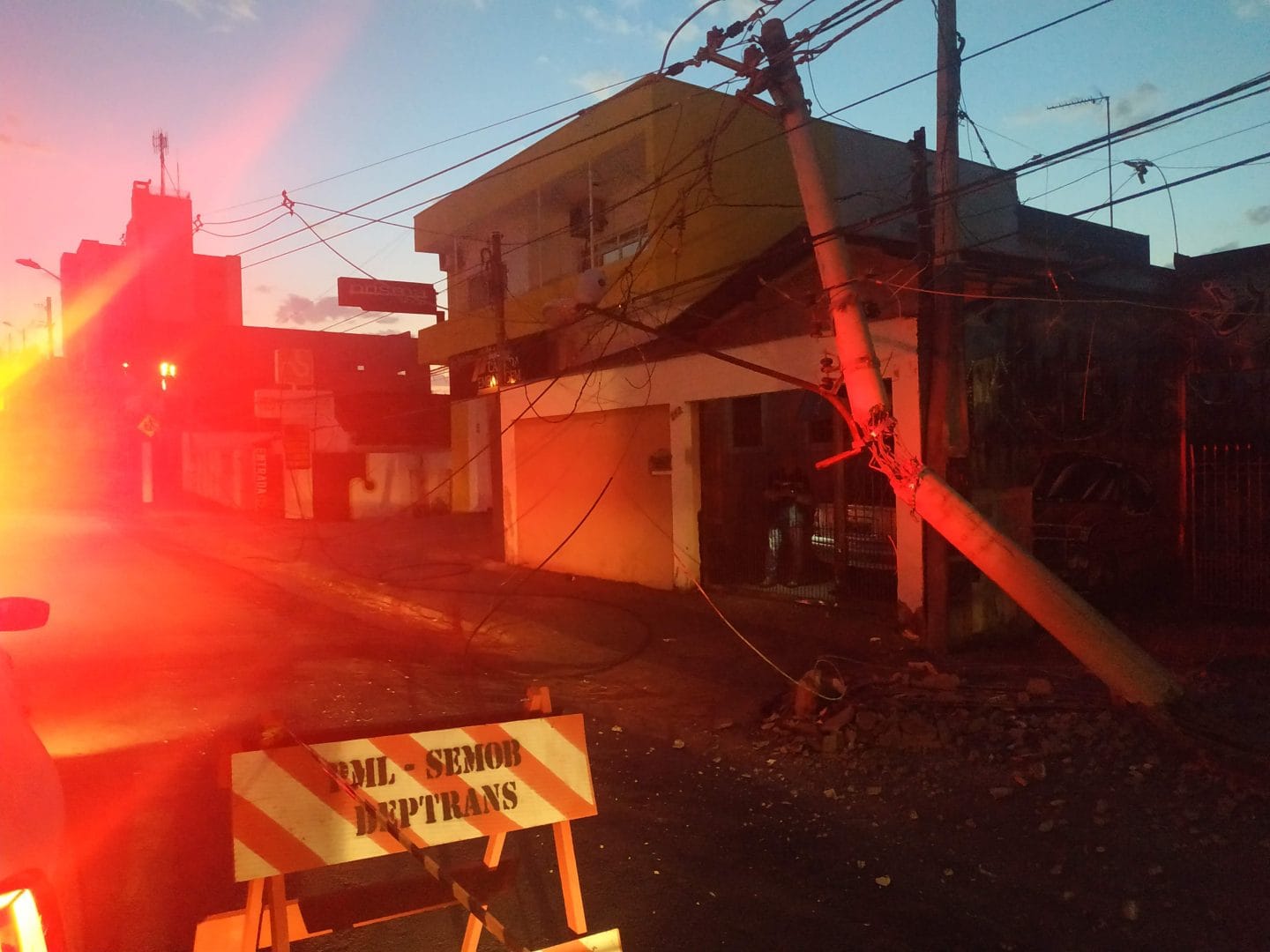 Após destruir poste e deixar moradores sem energia elétrica, motorista fugiu do local e veículo foi visto em área de prostituição