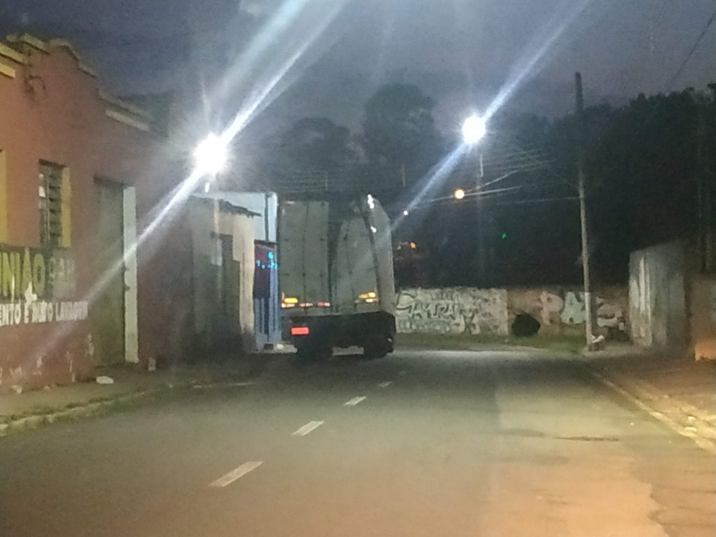 Caminhão destrói poste na Avenida Laranjeiras e é visto parado em frente de casas de prostituição
