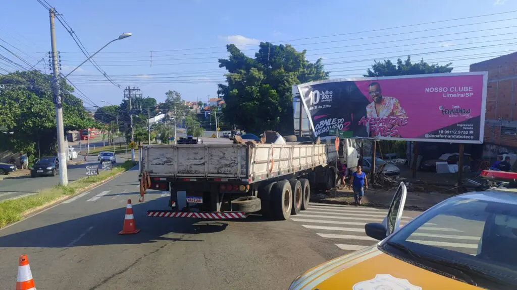 Um caminhão carregado com aço perdeu o freio ao descer a Avenida das Laranjeiras, na região do Jardim Planalto, sentido Centro, em Limeira, na tarde deste sábado (7) e invadiu uma loja. Ao perceber o que tinha acontecido, o motorista, de 35 anos, jogou o caminhão na calçada, para evitar um acidente maior.