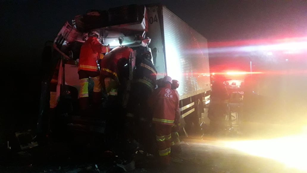 Conforme informações da Polícia Militar Rodoviária, Hélio Pontes Soares, de 41 anos, ficou preso nas ferragens e morreu no local. Ele dirigia um caminhão frigorífico e bateu em uma carreta carregada com carbonato de cálcio.