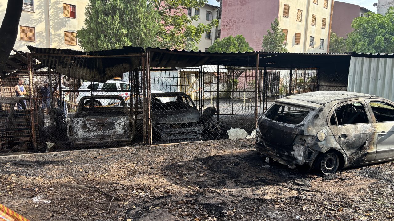 Pelo menos quatro carros e duas motos foram incendiados na manhã deste sábado (7), no Residencial Olindo de Lucca, em Limeira (SP).