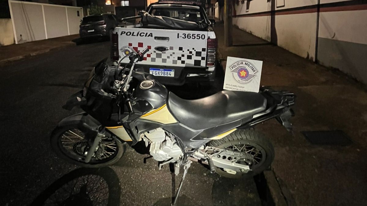 O veículo chamou a atenção dos agentes por ter características de uma moto furtada recentemente. Durante a abordagem, os rapazes informaram que o morador estava na garagem. Lá, os policiais encontraram um jovem de 21 anos e uma mulher da mesma idade, que segurava uma criança.