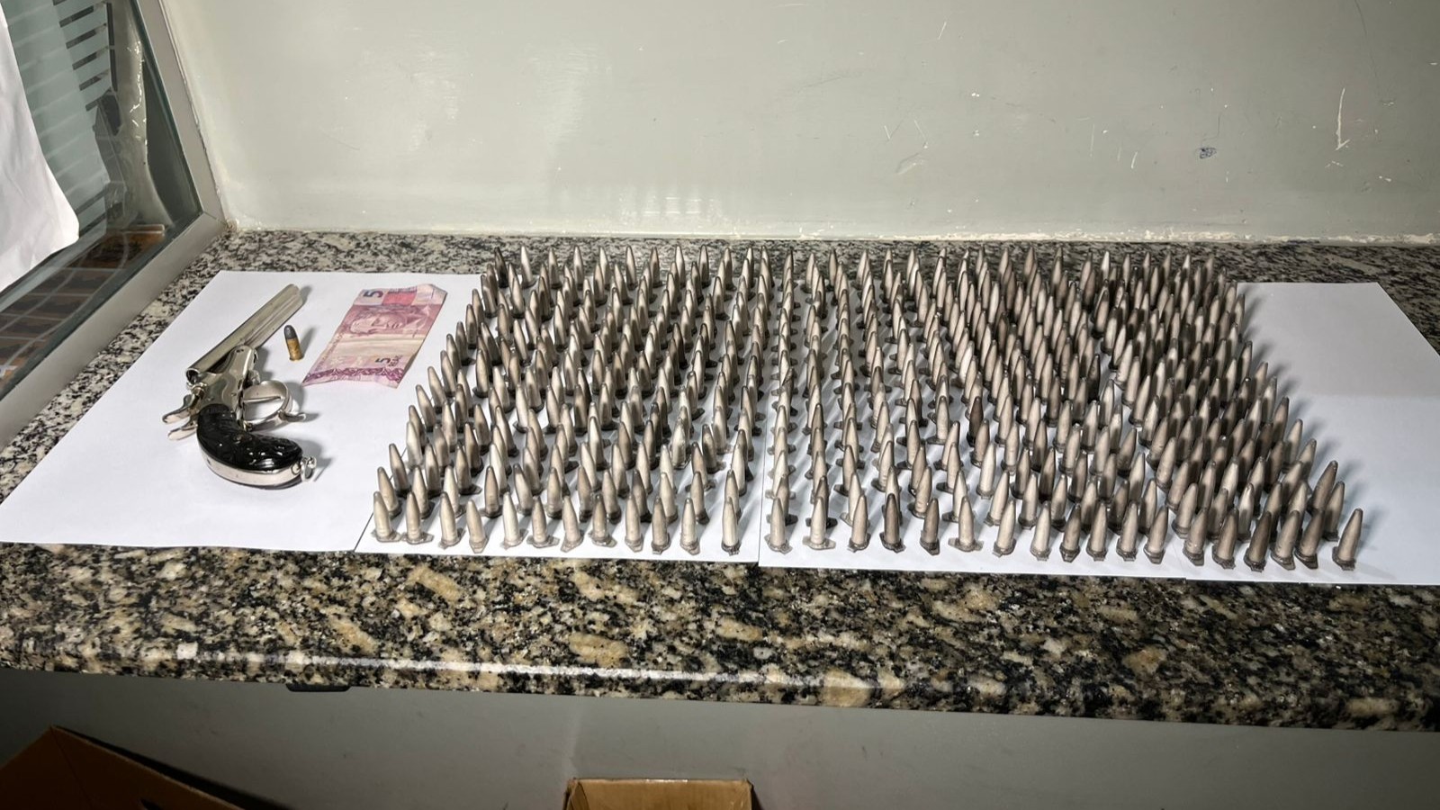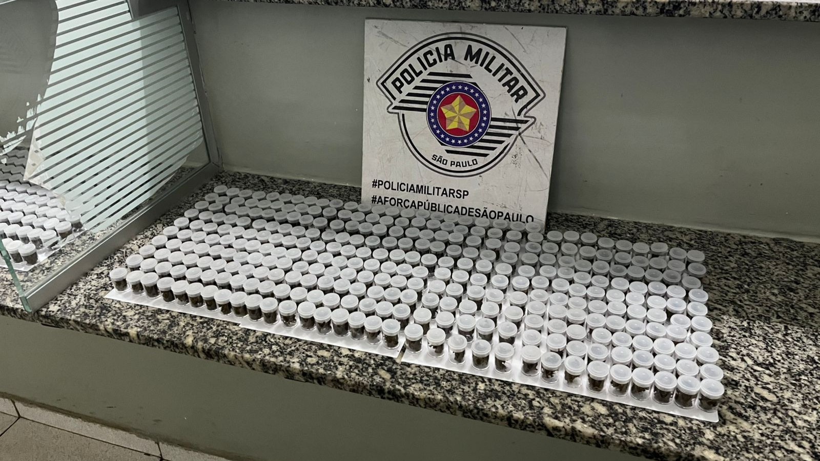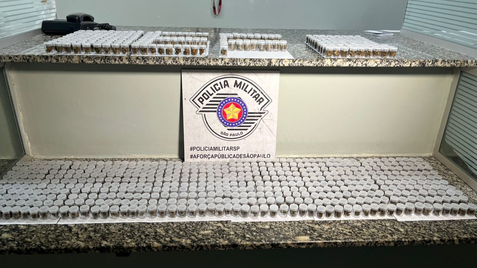 Questionado sobre a motocicleta, o morador admitiu que ela era produto de furto. Em seguida, confessou ter uma arma de fogo guardada na cozinha e entorpecentes no quarto. Na busca feita pela equipe, foram encontrados uma garrucha calibre .32 municiada, 454 pinos de cocaína (380g) e 1.2115 porções de maconha (4,5 kg) embaladas para venda, quatro balanças de precisão, sete celulares, duas maquininhas de cartão e materiais usados para o embalo da droga.