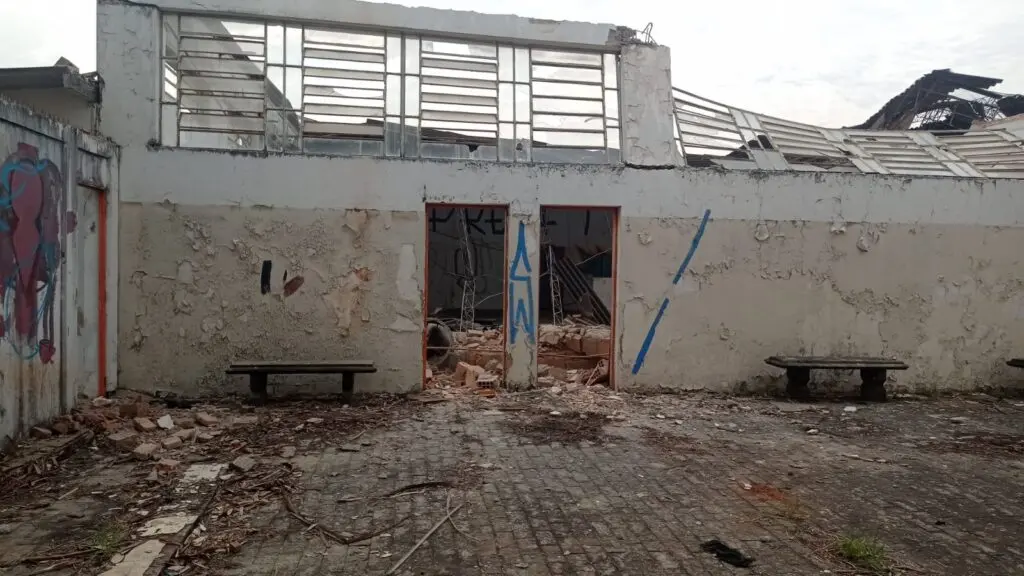 Desabamento de parte do telhado do antigo prédio da Unip, no Jd. Consoli atinge residências em Limeira