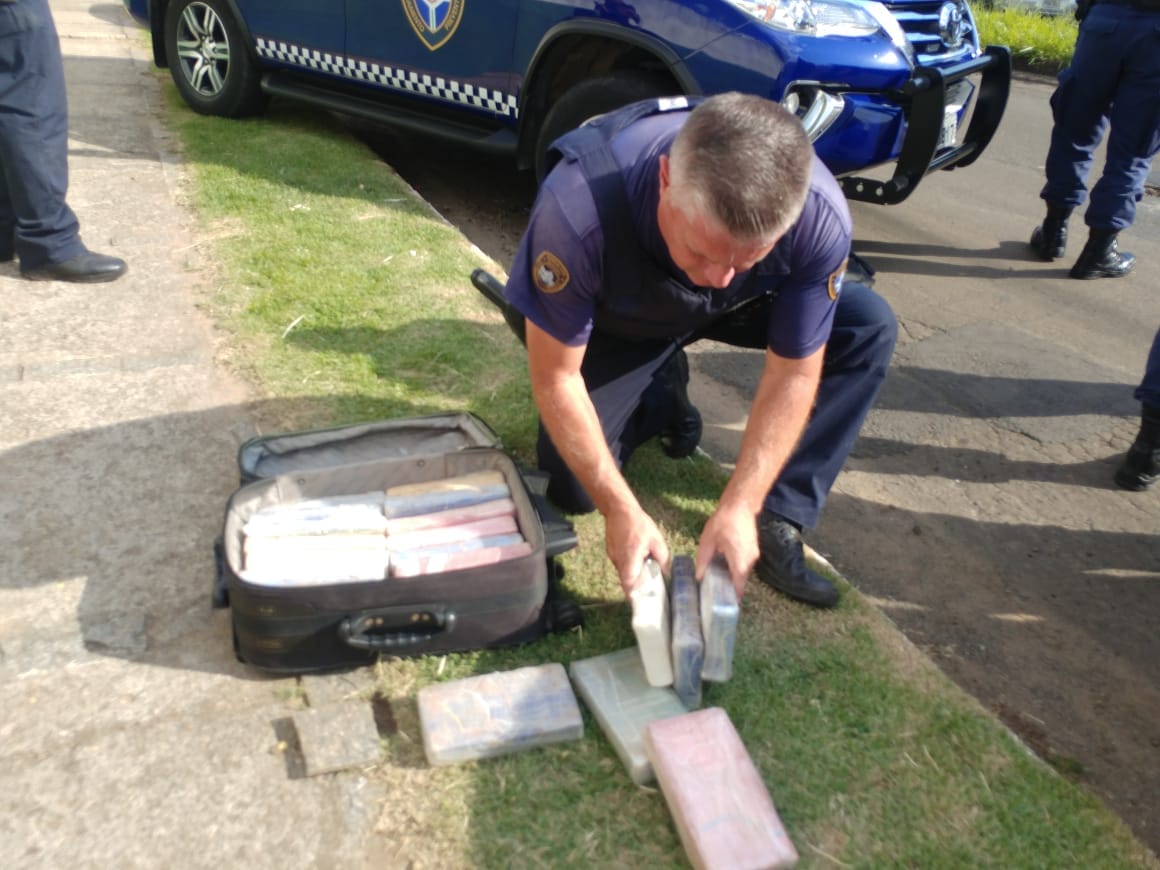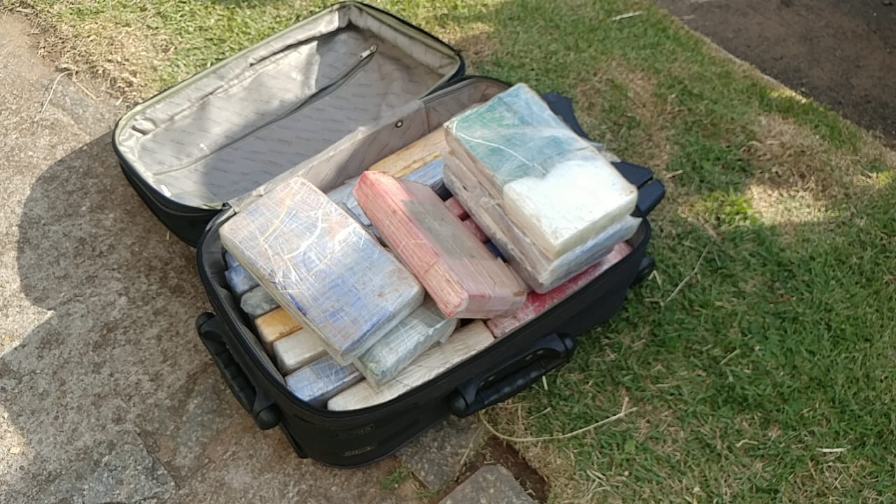 No momento da abordagem, os ocupantes do carro jogaram a mala com a droga na rua e fugiram em seguida