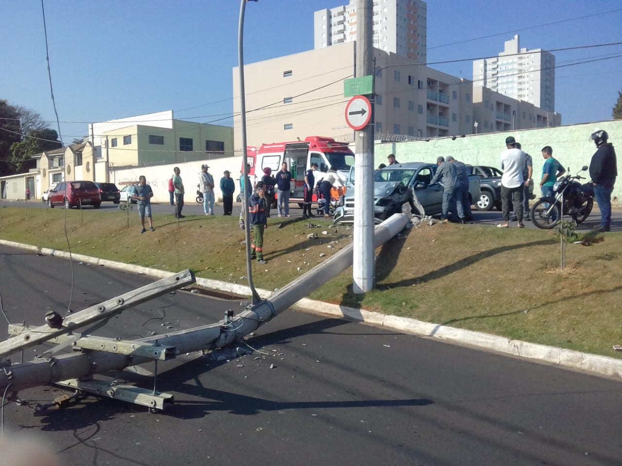 Homem derruba poste com carro na Avenida Cônego Manoel Alves, na região da Cidade Universitária, em Limeira