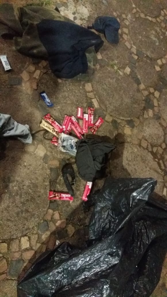 Como os gcms têm a chave do portão, eles entraram e viram quando o suspeito saiu correndo de dentro da cantina e tentou pular o muro da escola, sem sucesso. Ele foi abordado pelos guardas e dentro da mochila dele, os gcms encontraram as guloseimas. Ele também tinha R$ 200 em notas trocadas furtados da cantina.