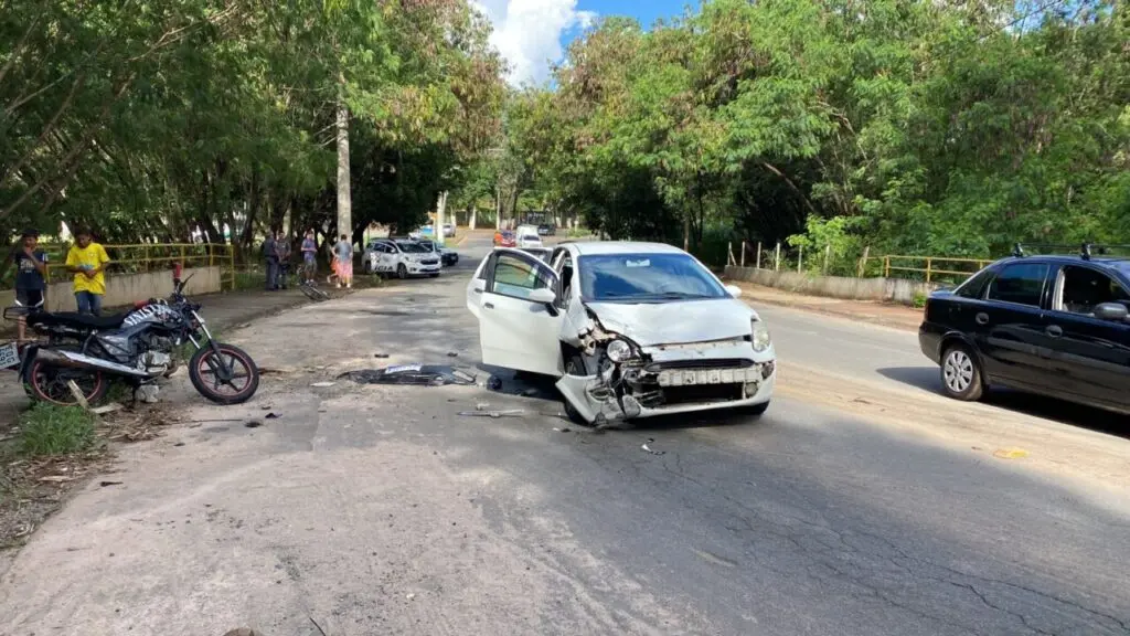 Um motociclista de aproximadamente 35 anos ficou gravemente ferido quando, na curva, bateu de frente com o carro na Avenida Guilherme Dibbern, na altura do pesqueiro.