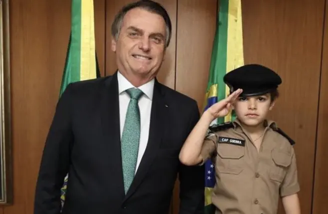 Capitão mirim visita Bolsonaro como presente de Dia das Crianças
