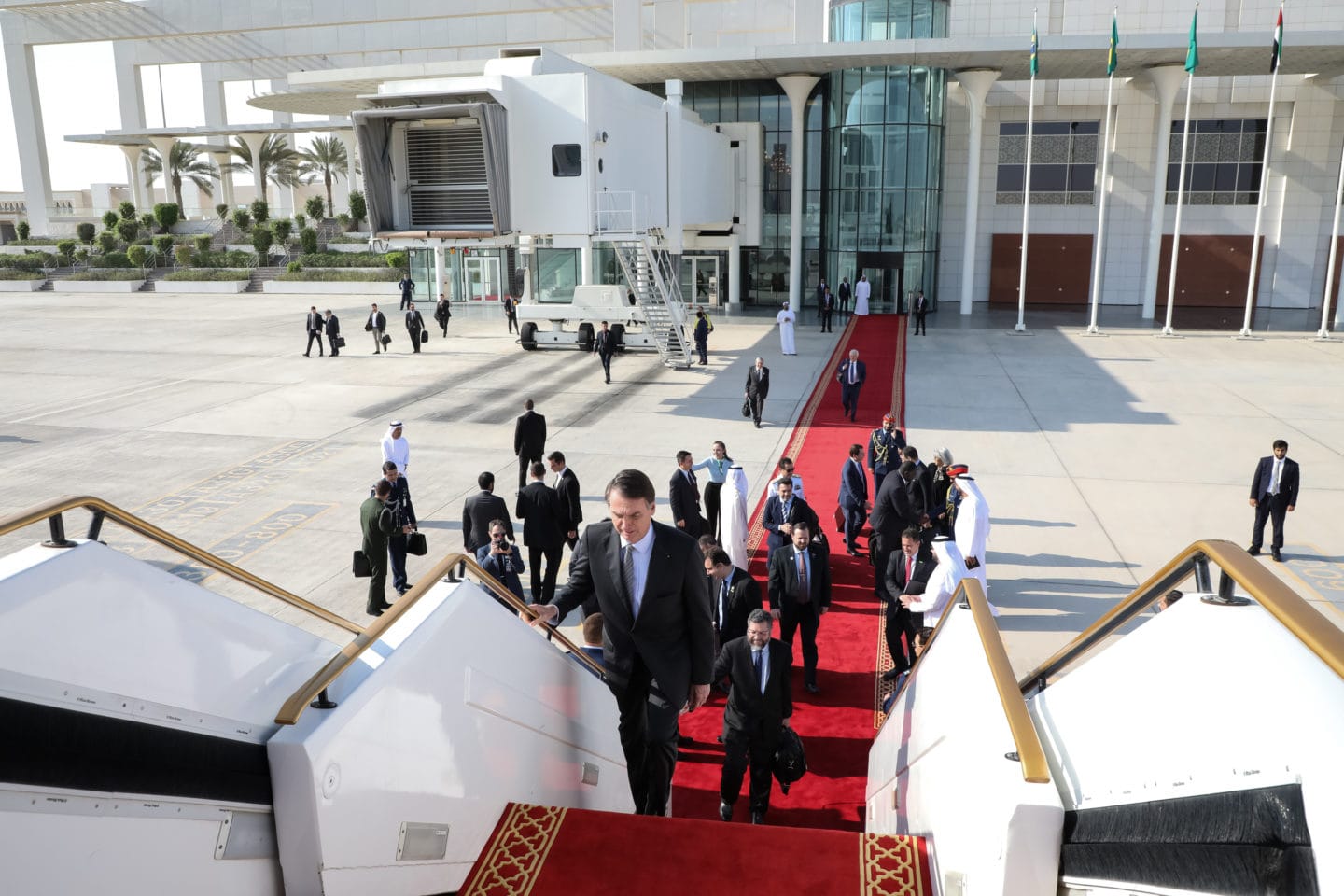 - (Abu Dhabi – EAU, 26/10/2019) Presidente da República, Jair Bolsonaro, durante chegada à cidade de Abu Dhabi, para visita oficial aos Emirados Árabes Unidos. Foto: Clauber Cleber Caetano/PR