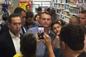 Bolsonaro compra shampoos e é tietado em supermercado em Brasília
