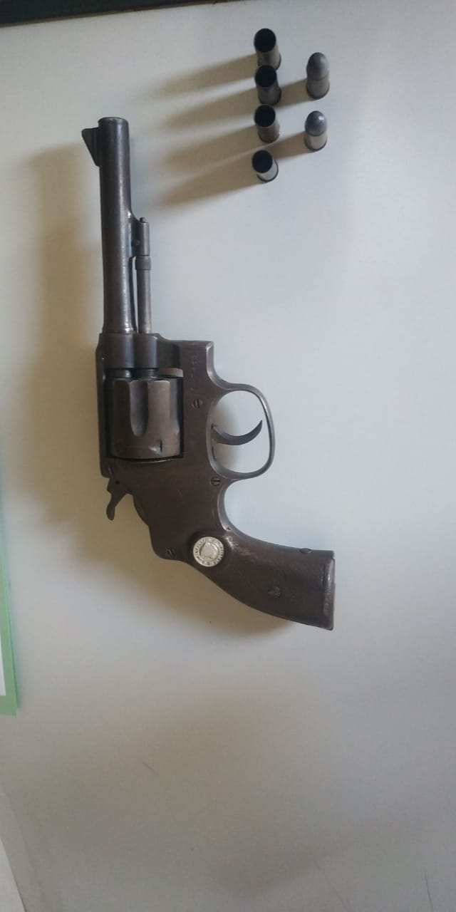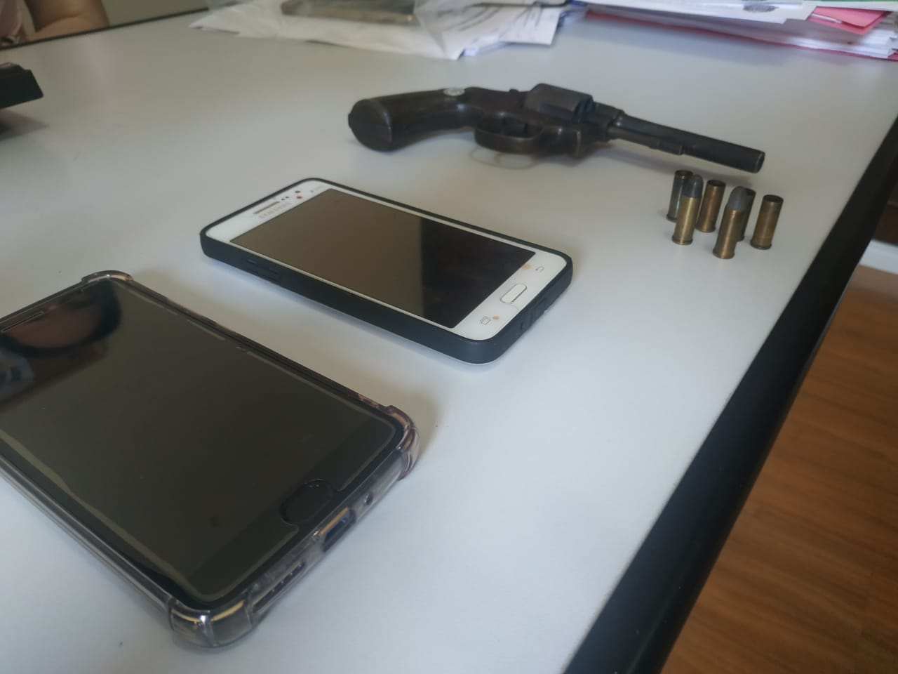 A arma e as munições, além dos celulares do casal, foram apreendidos pela polícia.
