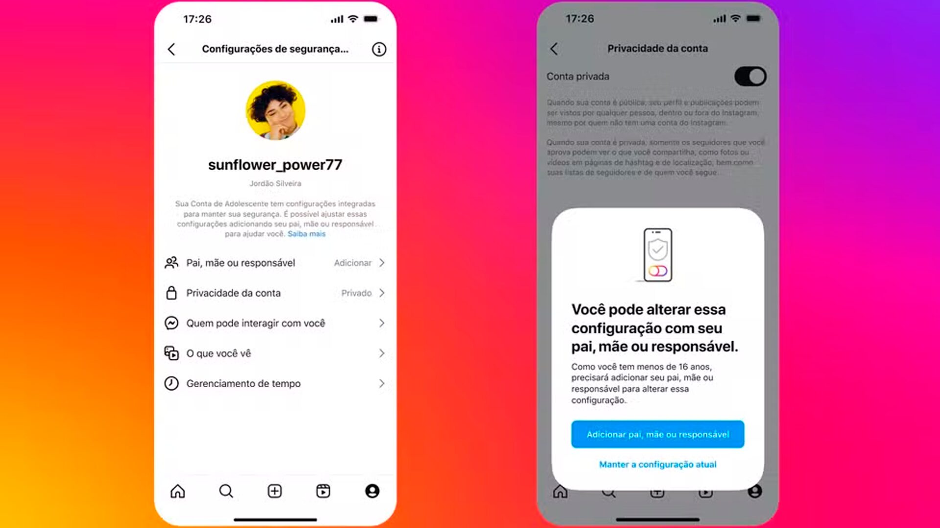 Para adolescentes menores de 16 anos, essa regra também se aplica a contas já existentes, e qualquer alteração nessas configurações precisará da autorização dos pais.